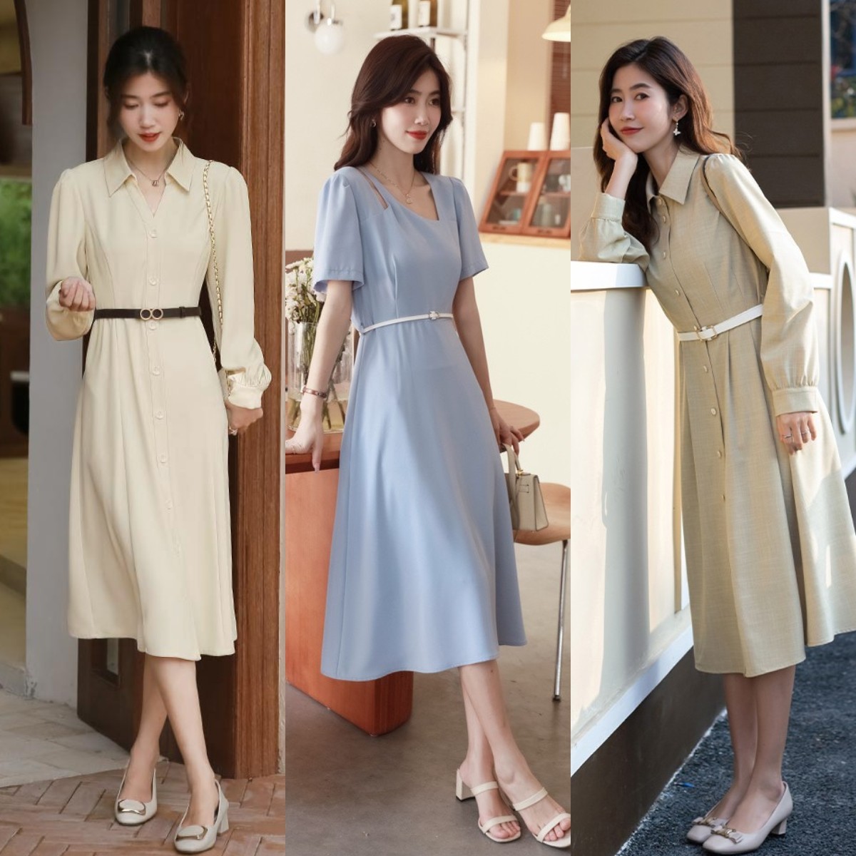 另外要想更加显瘦一些,我们还可以在连衣裙的搭配中加入“腰带”进行垫缀。腰带不仅可以充当配饰为造型增添亮点,还能明确的分割你的上下身比例,收紧腰线,显瘦还很高级。